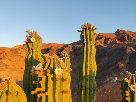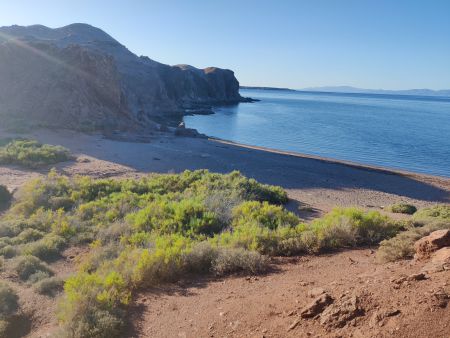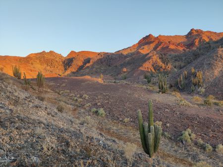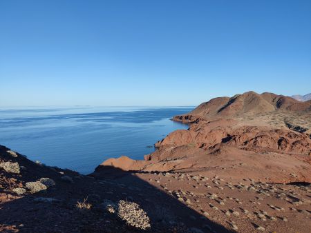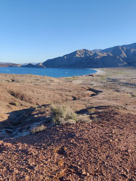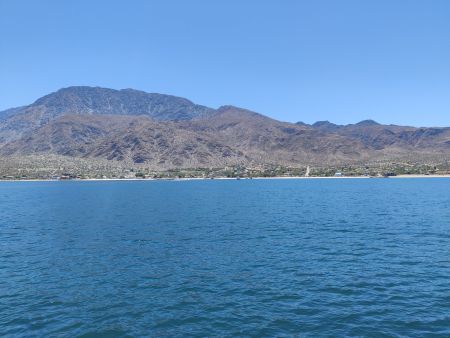 Running the numbers we were pushing it fuel-wise to make Santa Rosalia without stopping. So the decision was made to hop into Bahia LA to pick up 15 additional gallons of gas (Gato Loco has gasoline outboards). Eddie and Marcia decided to stay aboard while Lowell and I went into hustle mode. While I dropped off trash, Lowell was able to get the server to call a friend to give us a ride. It was going to be ten minutes, so we figured that meant 20 and ordered a beer. Two sips in and the friend arrived. No complaints as we had more distance to cover today and were happy to keep the hustle moving. All told we were only stopped for about 40 minutes from anchor down to anchor up. Pretty damn impressive, if I do say.