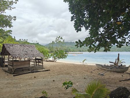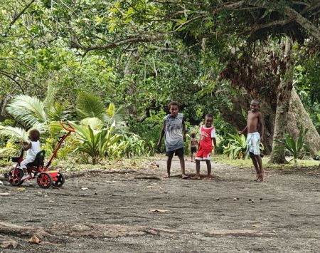 About mid-way back another, villager struck up a conversation. We learned about his cyclone proof house, children (four boys and two girls), and that he had a farm with fresh produce. Plans were set for tomorrow morning to come back with T-shirts to trade for whatever was ripe in his farm.