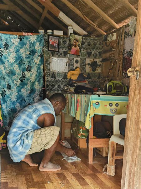 It was a complicated disassembly but finally we cracked it open. It had a surprisingly small Lion battery pack that unfortunately was something else I could not fix. We found a replacement one on Amazon and spent some time searching for shops in Luganville. That did not look promising but his son thought that a computer/cell phone shop in Port Vila might have it. So hopefully they can get someone to pick one up for them. I snapped some pictures and sent to him via Facebook before we reassembled it.