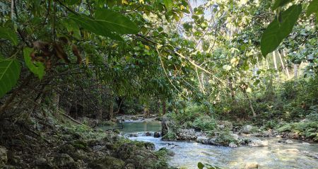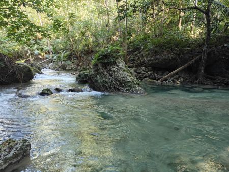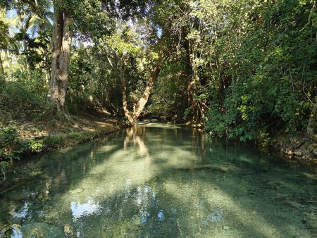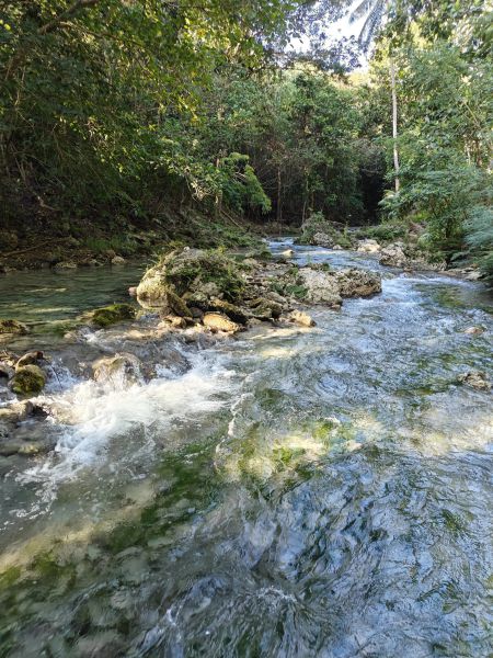 He had a nice home with a courtyard covered in a palm frown canopy. It was a nice chat with all of the typical topics of conversation and we had a chance to meet his oldest son David and his wife. With time burning, I suggested we look at his electrical system. After giving it an assessment and doing some troubleshooting, I was able to determine that the issue was with the connections between the inverter and the battery. With no tools I could only temporarily fix it but I left instructions which should make it easy for him to repair. Next up was a battery powered amplified speaker. At this point Carl and Roxy headed off to a fresh water swimming spot while we dug into this project.