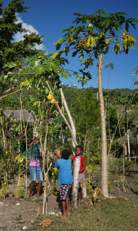 After lunch as we were getting ready a dinghy left the beach and we waved over the couple in the other yacht in the anchorage. They had some great information for us about Luganville and this village. With that we paddle in and were quickly met by Malcom, the chief’s son. Once the boards were secured, he led us to his home as his nieces and nephews followed along.