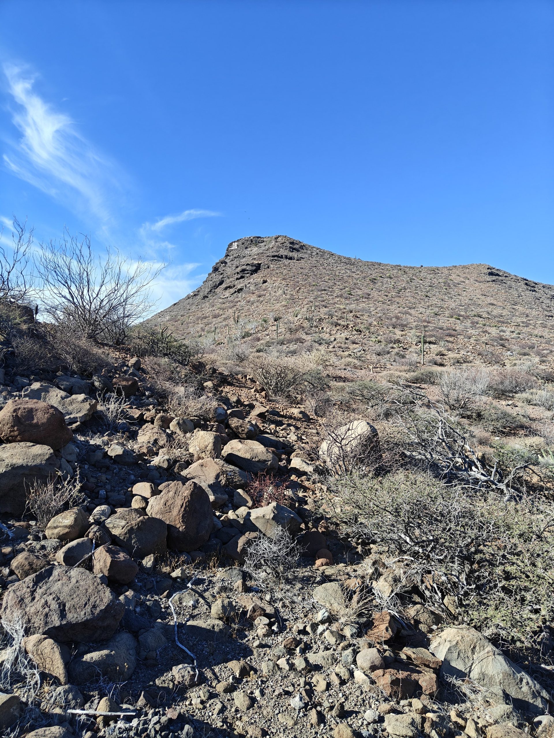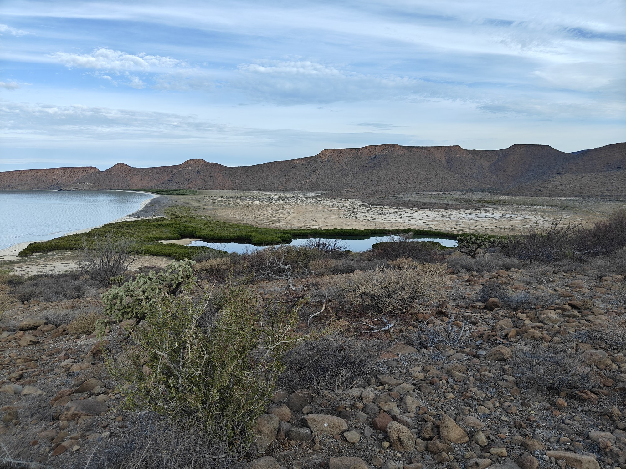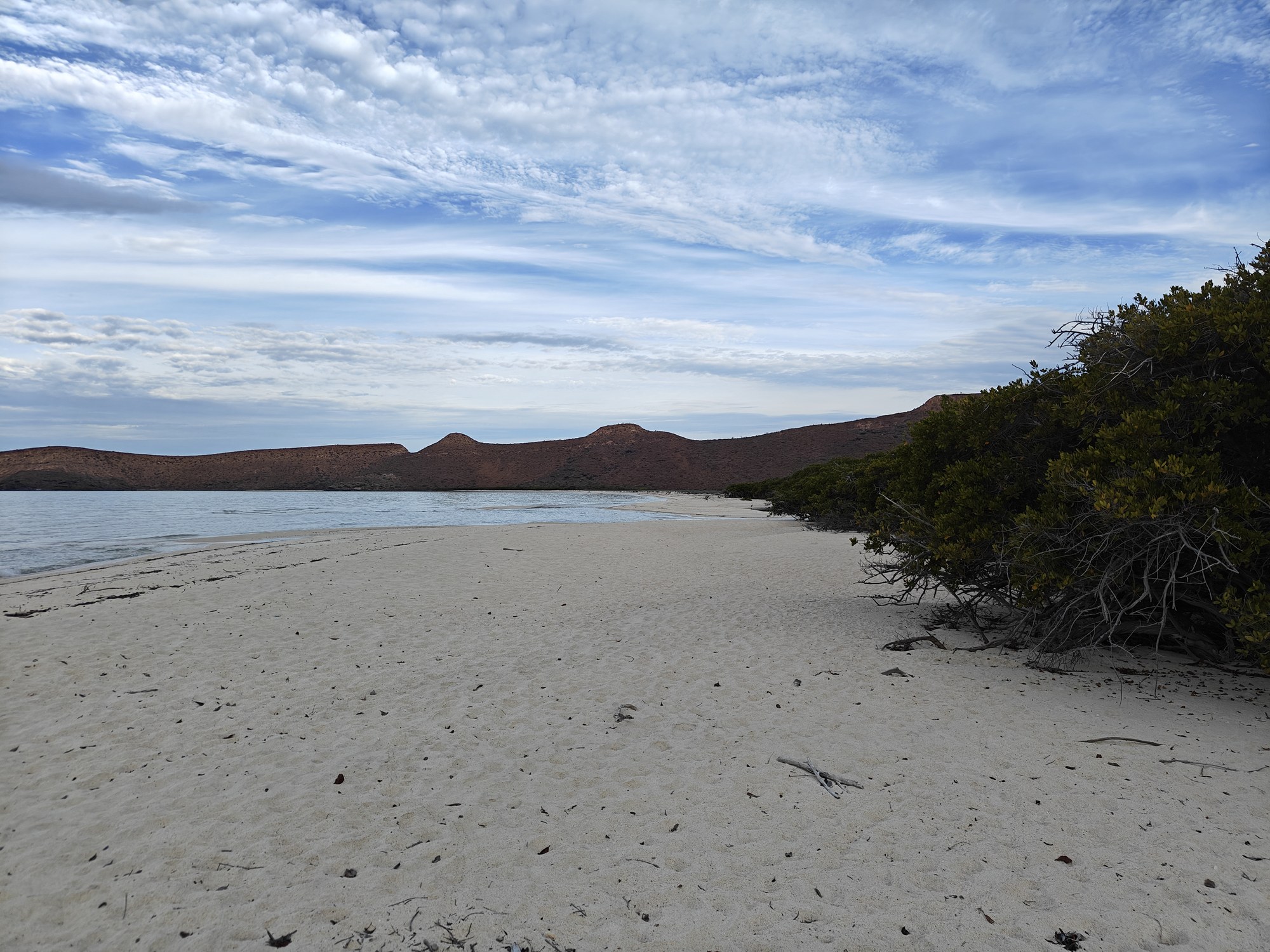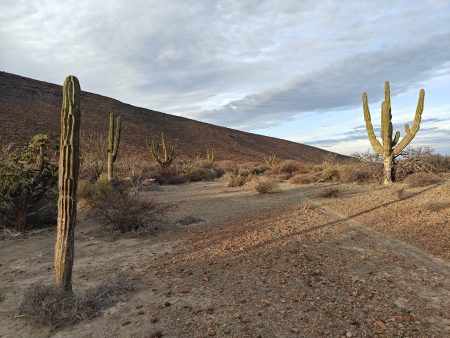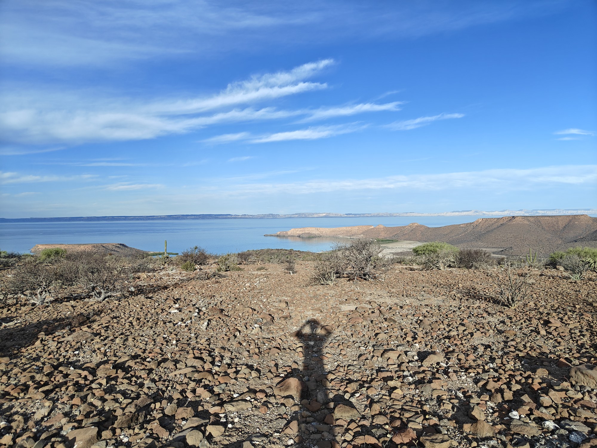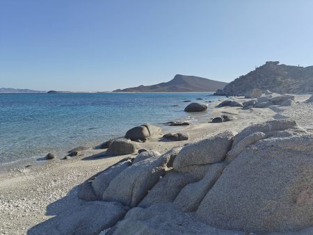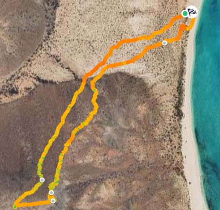 The next morning I had a bigger hiking planned – I would cut across the island to the Bahia San Gabriel anchorage on the other side. Back in 2017 I visited the former pearl farm and figured it was time for another look see. It is basically a walk through a wash to get there and other than a few interesting views it was a low key 5km. The most interesting parts was the estuary on the other side that ran deep into the island and surrounded the water with lush green vegetation. The beach was small and uninteresting so I headed for the pearl farm, only to be disappointed that the actual clam beds were on the other side and I couldn’t see them. Never to be one to take the easy way, I decided to hike up the side of the hill and work my way to the summit that I climbed yesterday. This added some distance and since it was a new route it was more interesting. I did question myself a few times as I was tired and the added elevation gain wasn’t helping. I powered through though. Another enjoyable view and another descent the same way as yesterday. Reaching the beach, I found that I more than doubled yesterday’s distance, coming in at 10.9km.