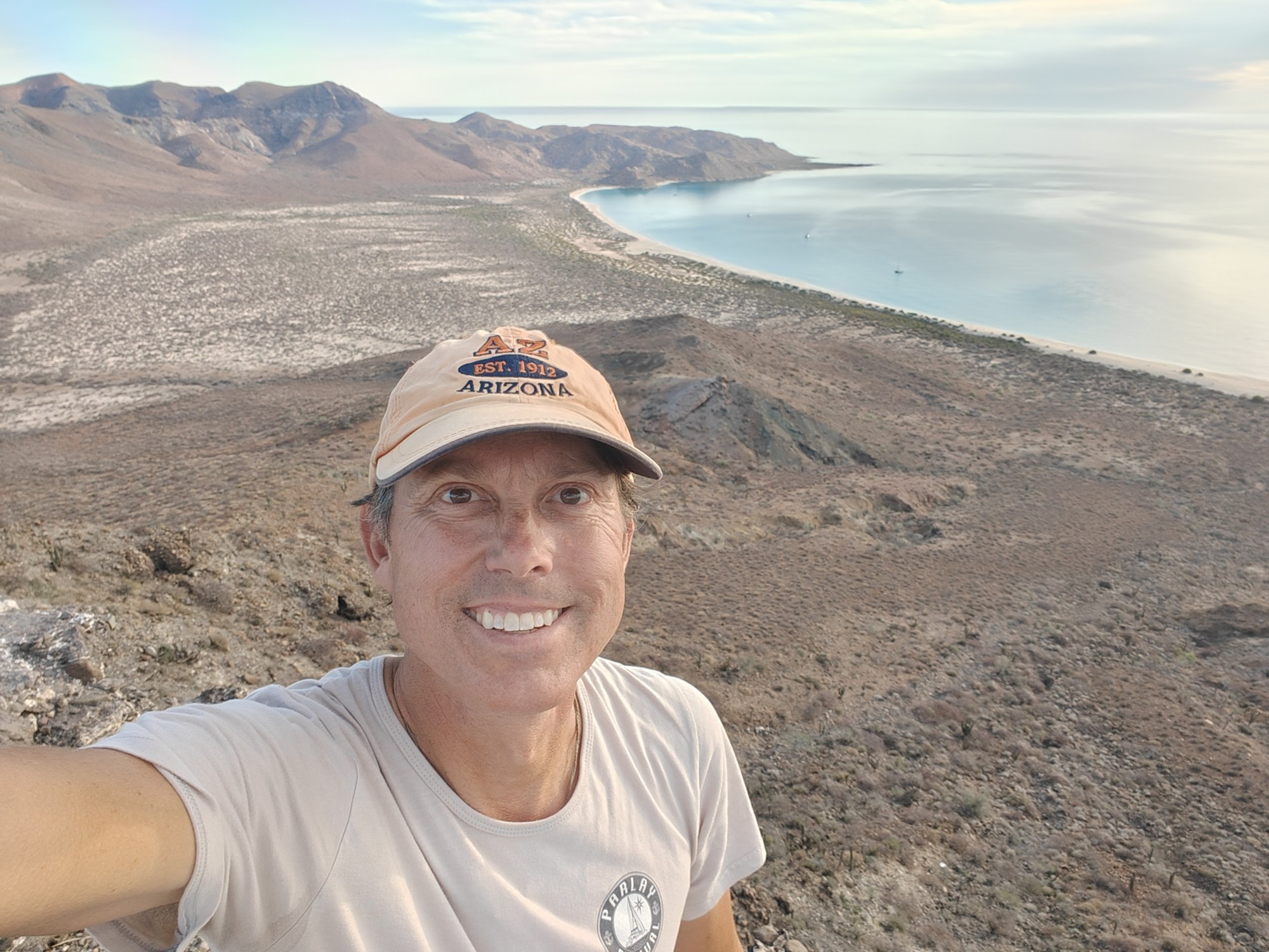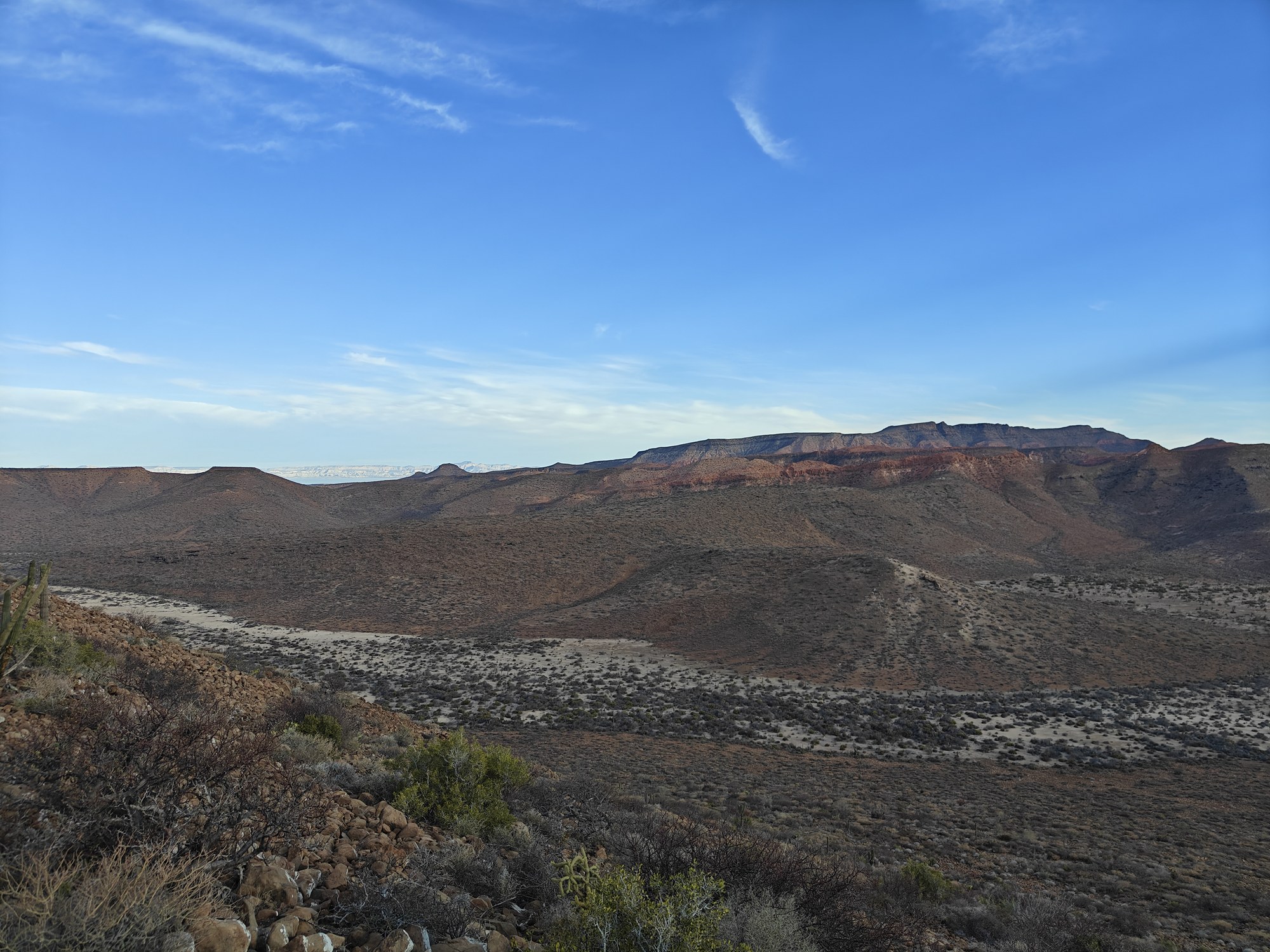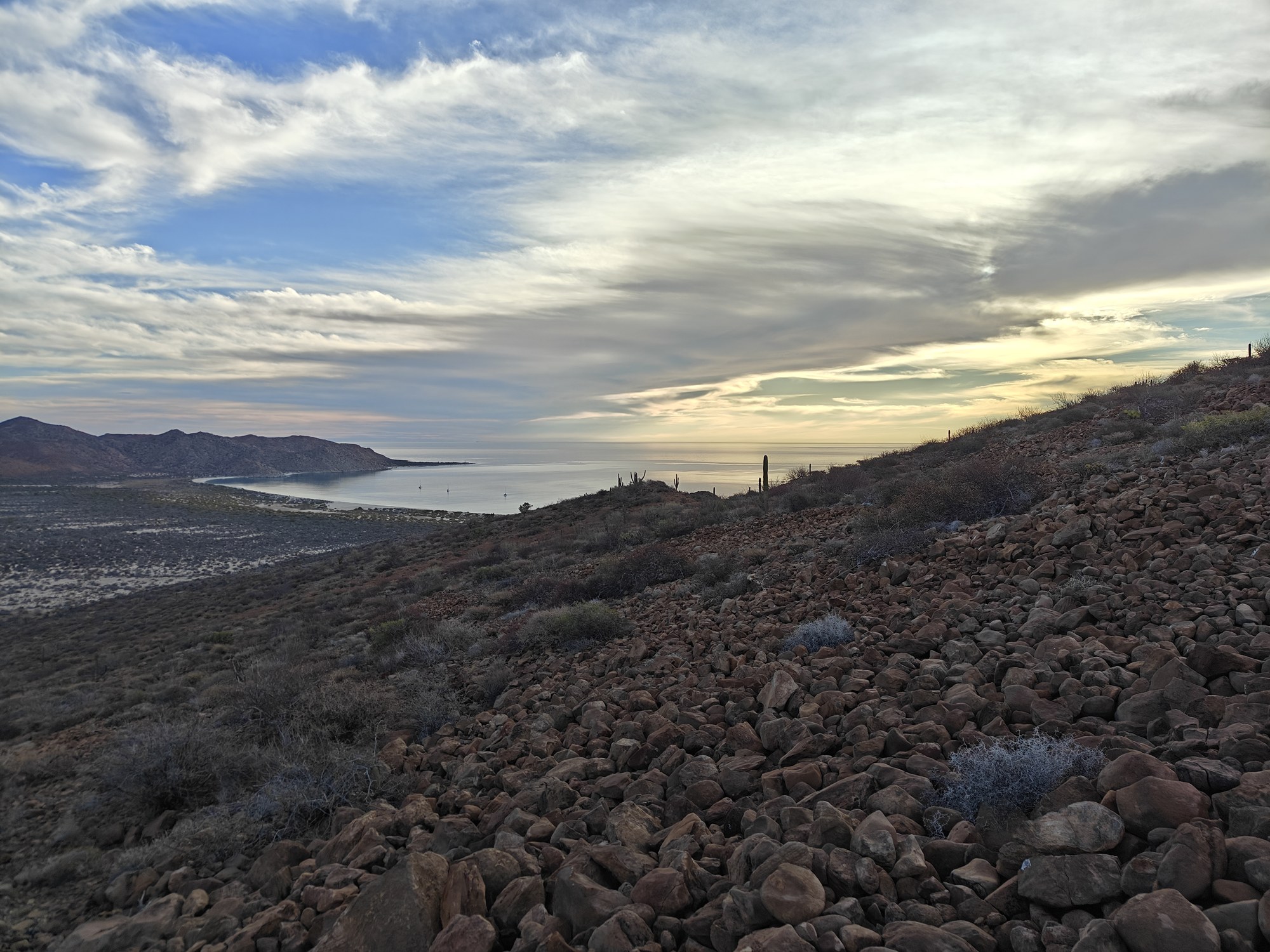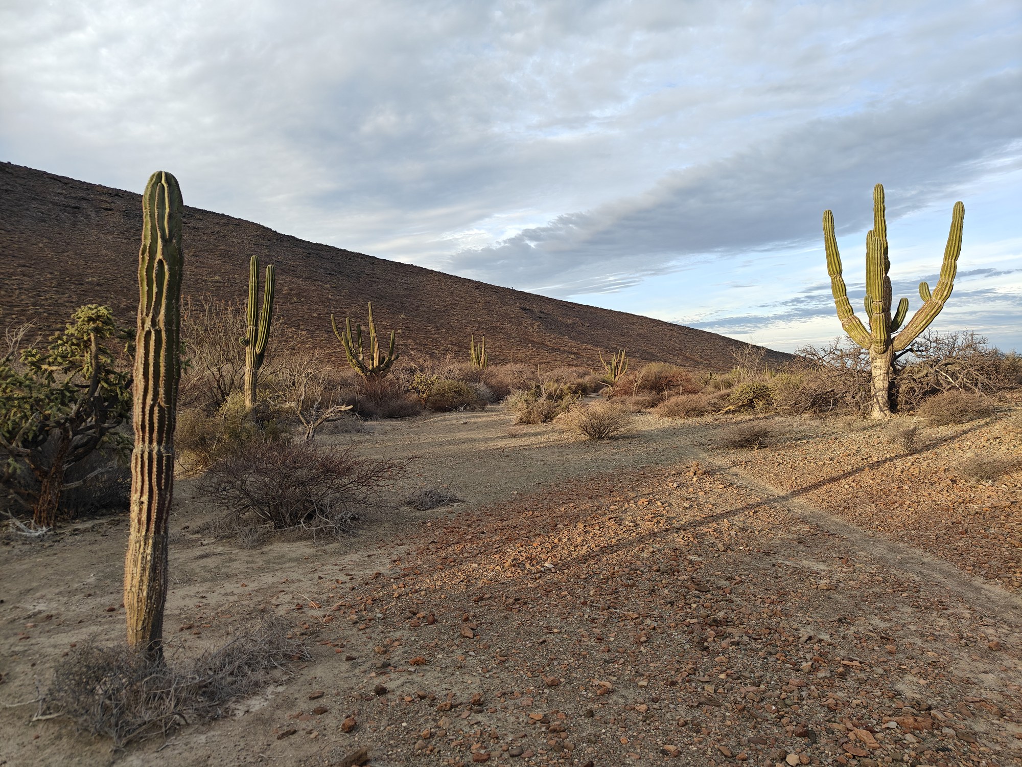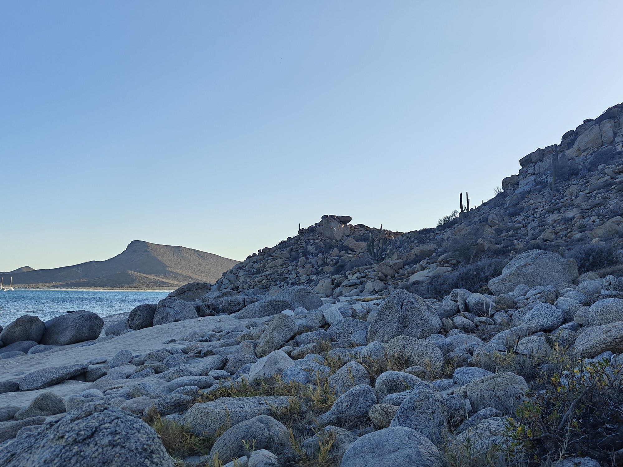 The next morning I had a bigger hiking planned – I would cut across the island to the Bahia San Gabriel anchorage on the other side. Back in 2017 I visited the former pearl farm and figured it was time for another look see. It is basically a walk through a wash to get there and other than a few interesting views it was a low key 5km. The most interesting parts was the estuary on the other side that ran deep into the island and surrounded the water with lush green vegetation. The beach was small and uninteresting so I headed for the pearl farm, only to be disappointed that the actual clam beds were on the other side and I couldn’t see them. Never to be one to take the easy way, I decided to hike up the side of the hill and work my way to the summit that I climbed yesterday. This added some distance and since it was a new route it was more interesting. I did question myself a few times as I was tired and the added elevation gain wasn’t helping. I powered through though. Another enjoyable view and another descent the same way as yesterday. Reaching the beach, I found that I more than doubled yesterday’s distance, coming in at 10.9km.