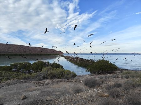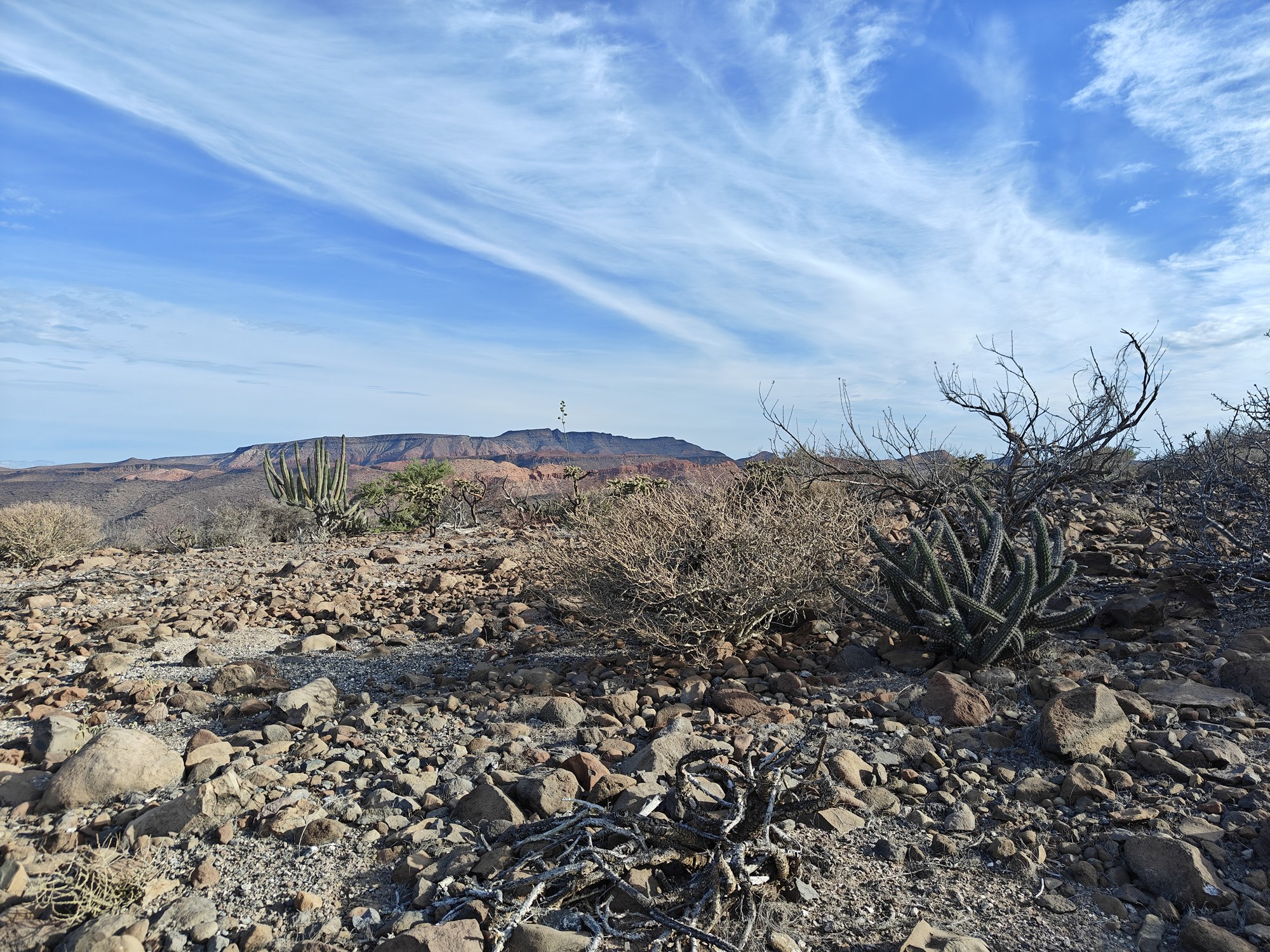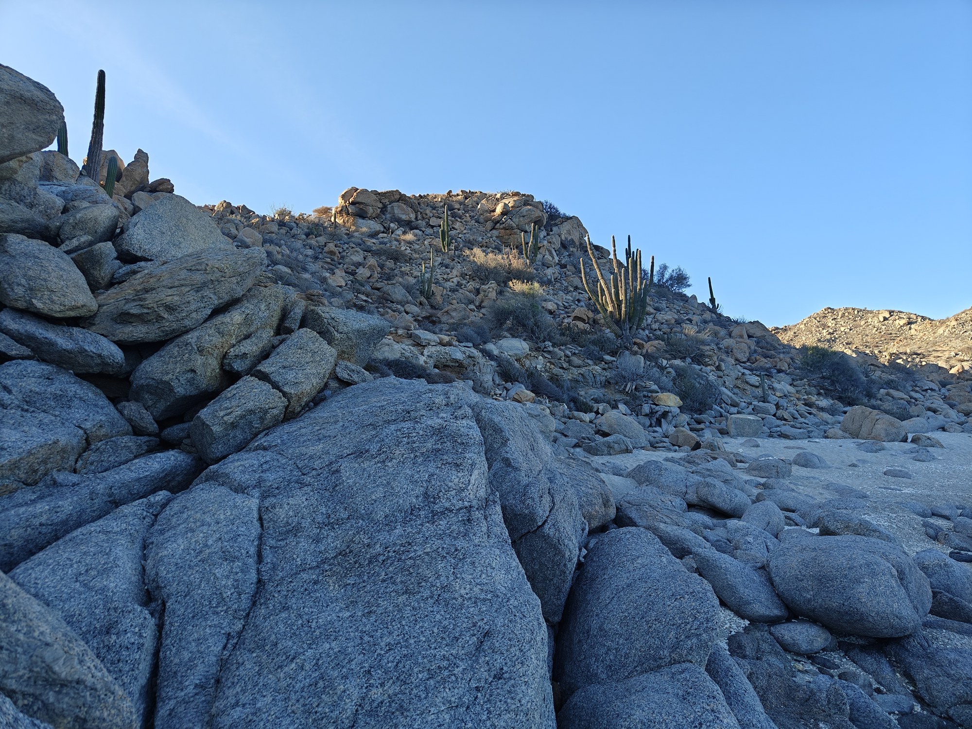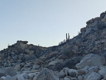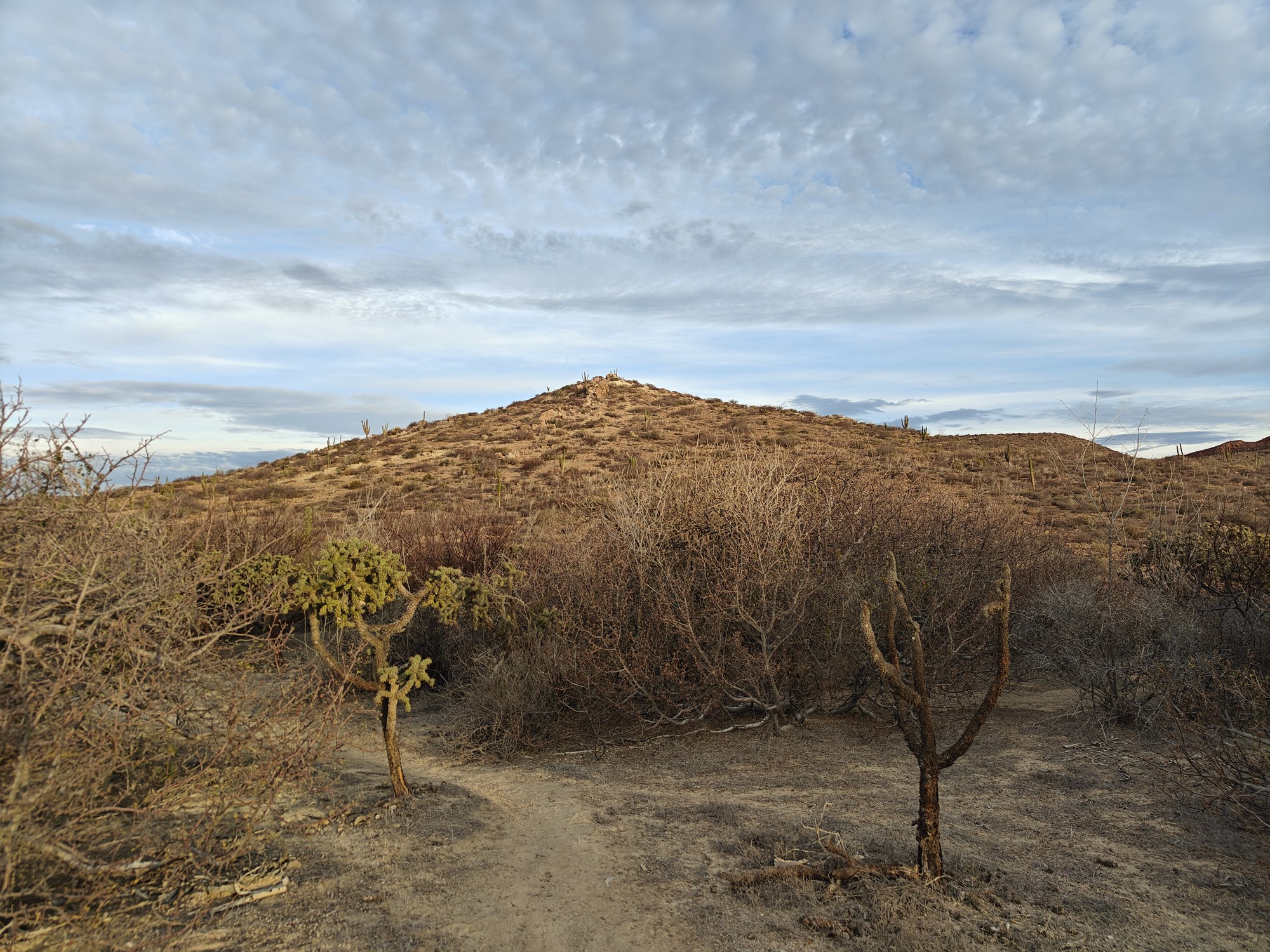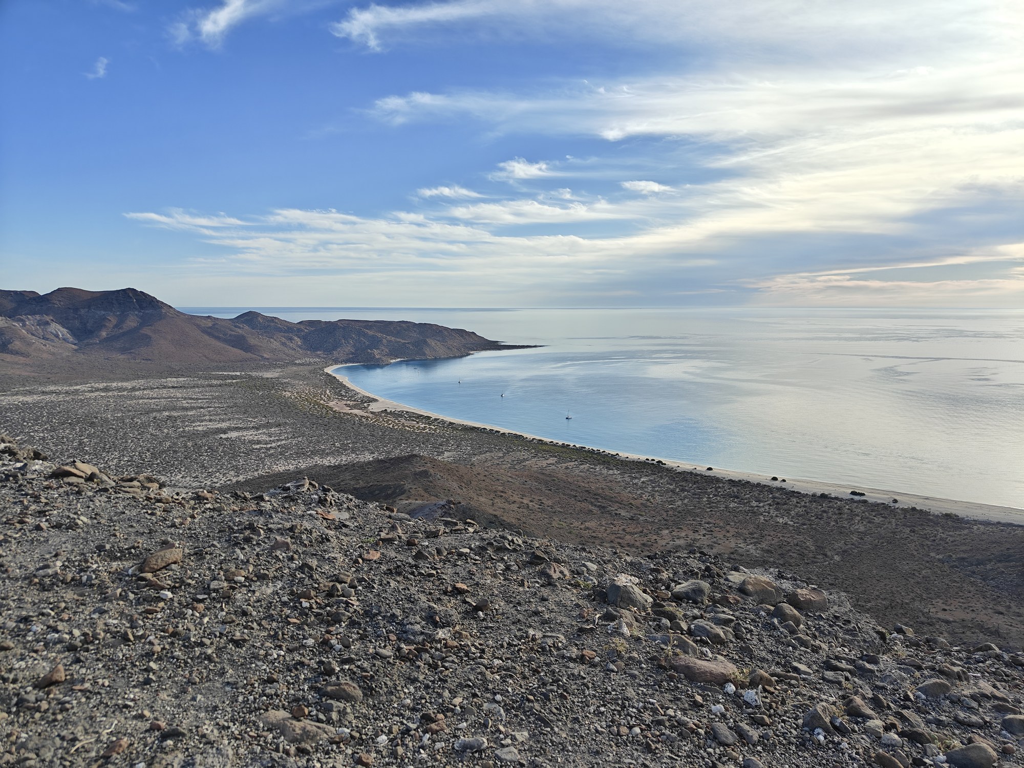 The next morning I had a bigger hiking planned – I would cut across the island to the Bahia San Gabriel anchorage on the other side. Back in 2017 I visited the former pearl farm and figured it was time for another look see. It is basically a walk through a wash to get there and other than a few interesting views it was a low key 5km. The most interesting parts was the estuary on the other side that ran deep into the island and surrounded the water with lush green vegetation. The beach was small and uninteresting so I headed for the pearl farm, only to be disappointed that the actual clam beds were on the other side and I couldn’t see them. Never to be one to take the easy way, I decided to hike up the side of the hill and work my way to the summit that I climbed yesterday. This added some distance and since it was a new route it was more interesting. I did question myself a few times as I was tired and the added elevation gain wasn’t helping. I powered through though. Another enjoyable view and another descent the same way as yesterday. Reaching the beach, I found that I more than doubled yesterday’s distance, coming in at 10.9km.
