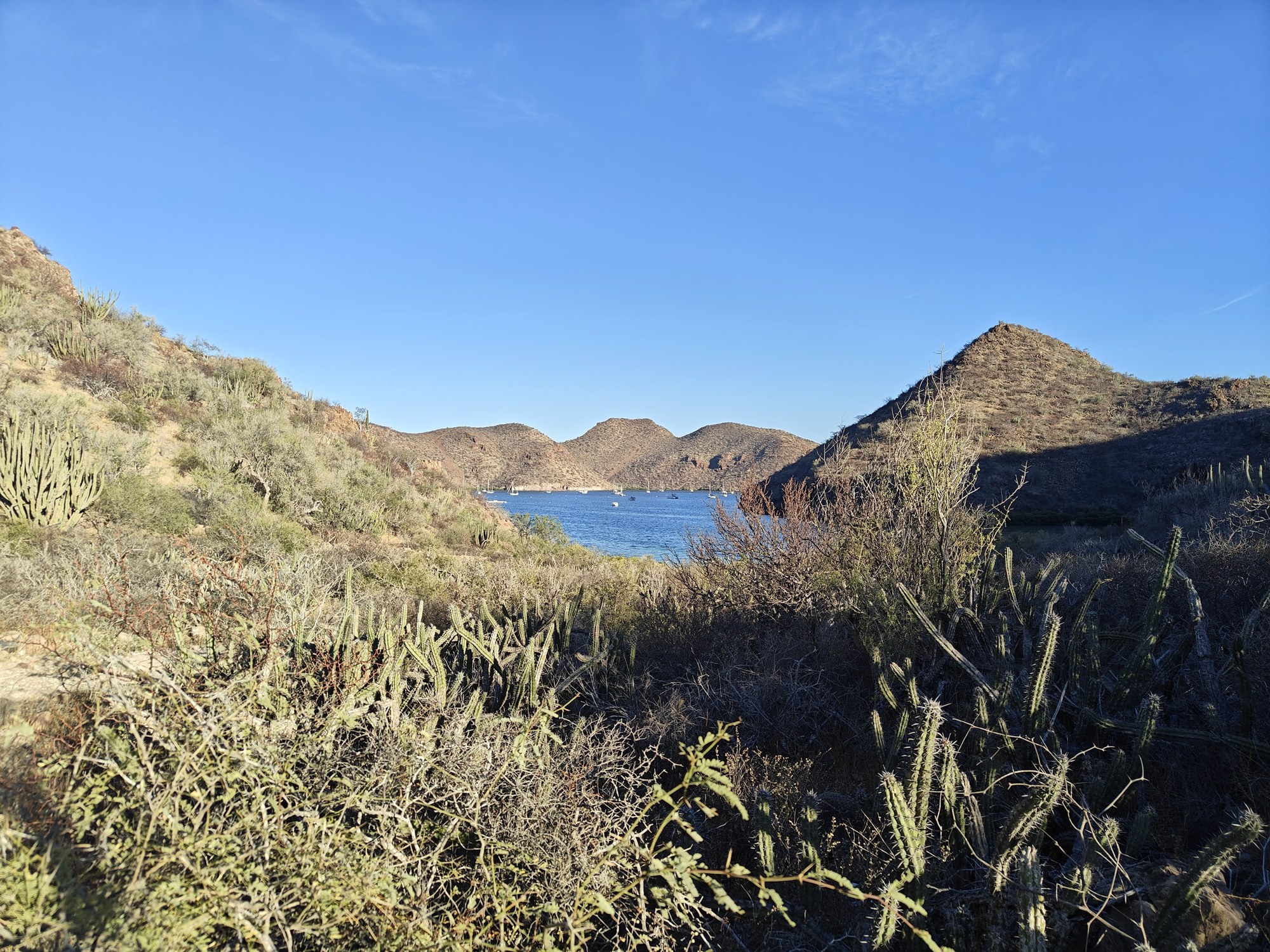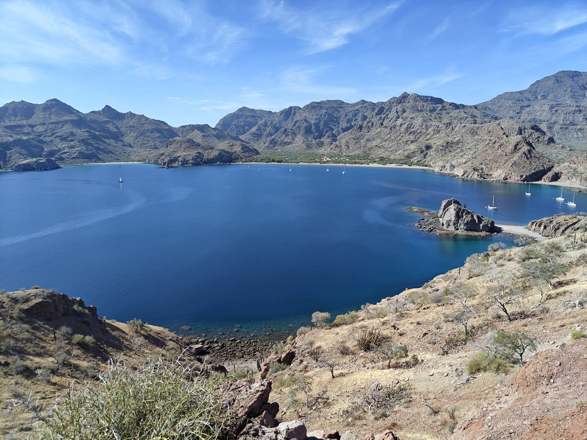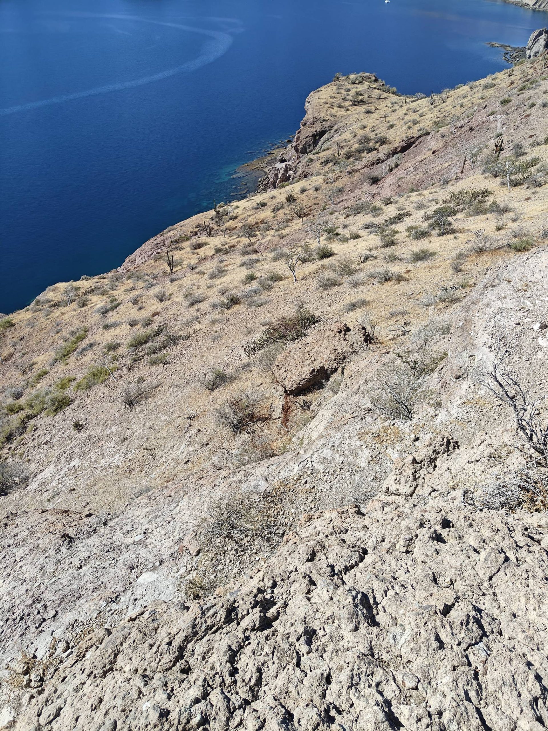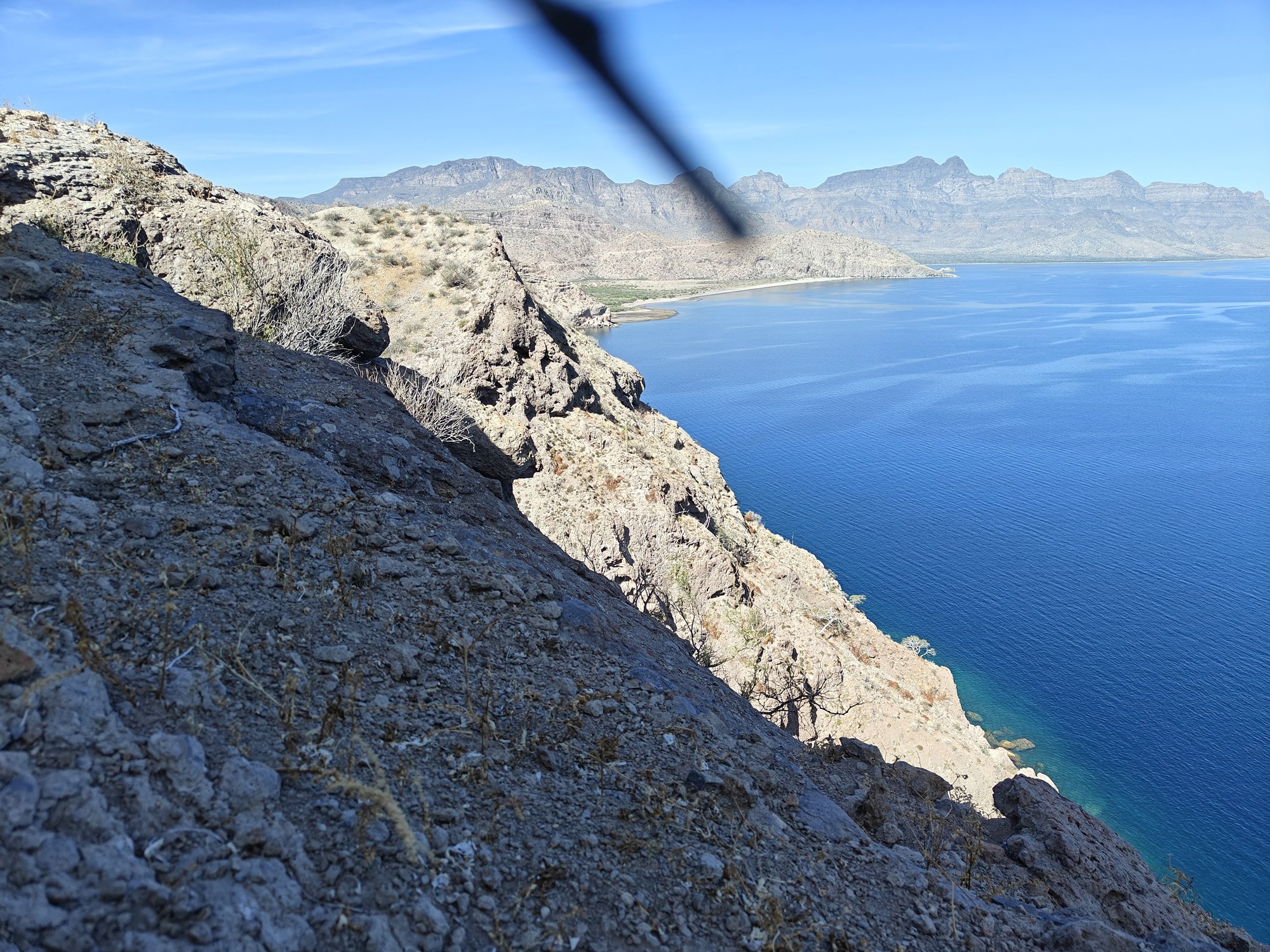 I have the hikes I like to do at each anchorage and the hill overlooking the entrance to Agua Verde is a short but fun one. The rock climb up to the top at the end is skipped by most due to the risk of falling but not by this guy. Truth be told, it was sketcher than I remembered and it took a bit of route finding to figure out the safest path. Inspiring views seen it was back aboard and moving.