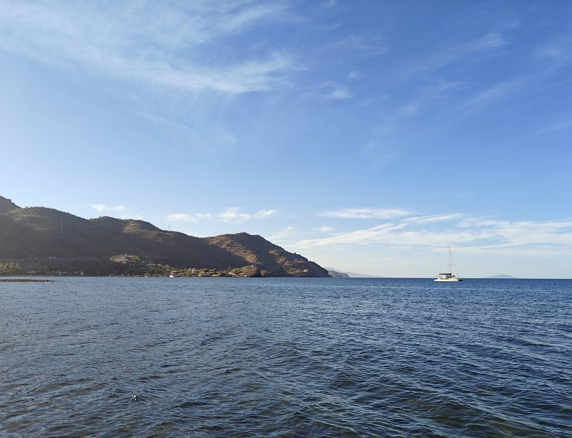 It started as a motoring trip, then a motor-sailing trip, and for the last little bit a sailing trip. My plan was to anchor in front of the restaurant Vista al Mar (“The Clam Shack”) but a mile out with decent sized rollers behind me I decided maybe the dinghy would be a better option. So a tight turn into Juncalito was made to park the boat in the calm, wind protected anchorage. I dropped the dinghy and motored the 3nm to the restaurant. During the trip I was questioning my plan as it was pretty rough going downwind and heading back would be a bash. Huh. Oh well, an excellent clam dinner with a limonada mineral took my mind off the return trip. My belly full, it was time to pay the piper, thankfully things had settled down a bit, and it wasn’t terrible but I did get a good core workout bracing myself with my legs against the inside of the boat.