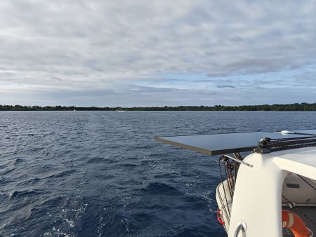 It couldn’t have gone better with less than two hours from anchoring to being back on our way. The passage had now officially begun! The “Second Channel” is a narrow waterway between the main island of Espirito Santo and smaller islands to the south. It is notorious for having fast moving currents depending on the tide, and with a recent full moon and less that ideal departure timing we fought a very strong current peaking at 4.7 knots, making our forward progress only 1.7 knots. No bueno. At that point we raised the sails to give us an extra knot of speed. Still the first ten miles of the passage was painfully slow. Once out into open water the speed improved, while the ride got bit rough. We were able to sail all afternoon and into the evening