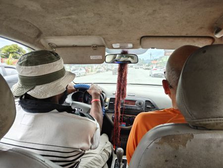 A bit of a rush to figure out where we should anchor and the logistics. Ultimately, we opted for anchoring in front of the Beach Resort (very popular spot for cruisers). Anchor down, we had to reinstall the dinghy engine, get the fuel cans, and hustle off to shore. A taxi came straight away and was happy to shuttle us to get fuel, the ATM, and back. Arriving at the gas station we learned it was cash only. Off we went into town and after some confusion with how much we needed we acquired the necessary cash and back we went for our fuel. A short drive later, we were hauling the eight heavy cans through the resort and onto the beach. I had a meeting with the software development team which I just barely made. I helped load while on the call and it was a funny sight, a full dinghy, me on mu phone, and Carl navigating us back to Sky Pond.
