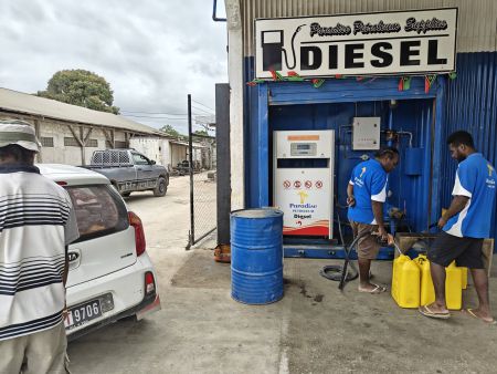 The day had arrived! The wind seemed a bit calmer overnight, which was nice since we knew the first hour would be bashing into the wind/waves. After coffee, we fired up the engine and were on our way. It took half an hour to get out of the bay. Once looping over the top it was a bit rough but not bad. Making the turn south it continued and while slow and the waves reduce the boat speed, it was fine. Reaching the channel that leads to Luganville the waves were behind us and smaller now. I started cooking my breakfast and was nearly done when Carl let me know that he thought we should stop to fill the Gerry cans of diesel since the forecast was for lighter than ideal winds over the passage.