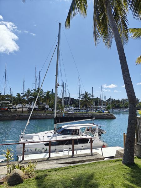 On the drive back the driver asked if it was okay to make a stop, seeing it was a Bread Kitchen location I joined him and stocked up on some sausage rolls. One more stop for a lady selling roti before we were back aboard with the Vanuatu currency we needed to check in and for the volcano hike. Our Fiji checkout was pushed back to 2pm, so with time to spare I called my parents and Jean before we got the word that we could fuel up (oh yeah I forgot to mention the marina was out of diesel this morning but the truck did arrive), and then tie off to the Q dock.