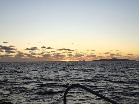 It was not the start we had expected with 25 knot winds pretty close to the direction we needed to go in order to exit the south pass. Rough but not terrible, the worst part was the dismal 3ish knots of forward speed. It took us five and a half hours to cover the 18 nm miles to the pass but once through it, we raised the sails and turning on the rumbline to Vanuatu.