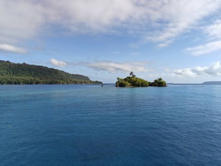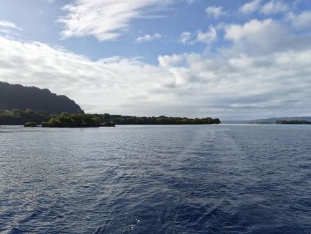 The forecast was spot on with not much wind and mellow seas. After preparing for an all day bash, since we would be going into the prevailing wind/waves, it was a wonderful bit of luck. We were able to make water and relax for the 40-mile motor south, back to Palikulo bay. No real excitement to share.