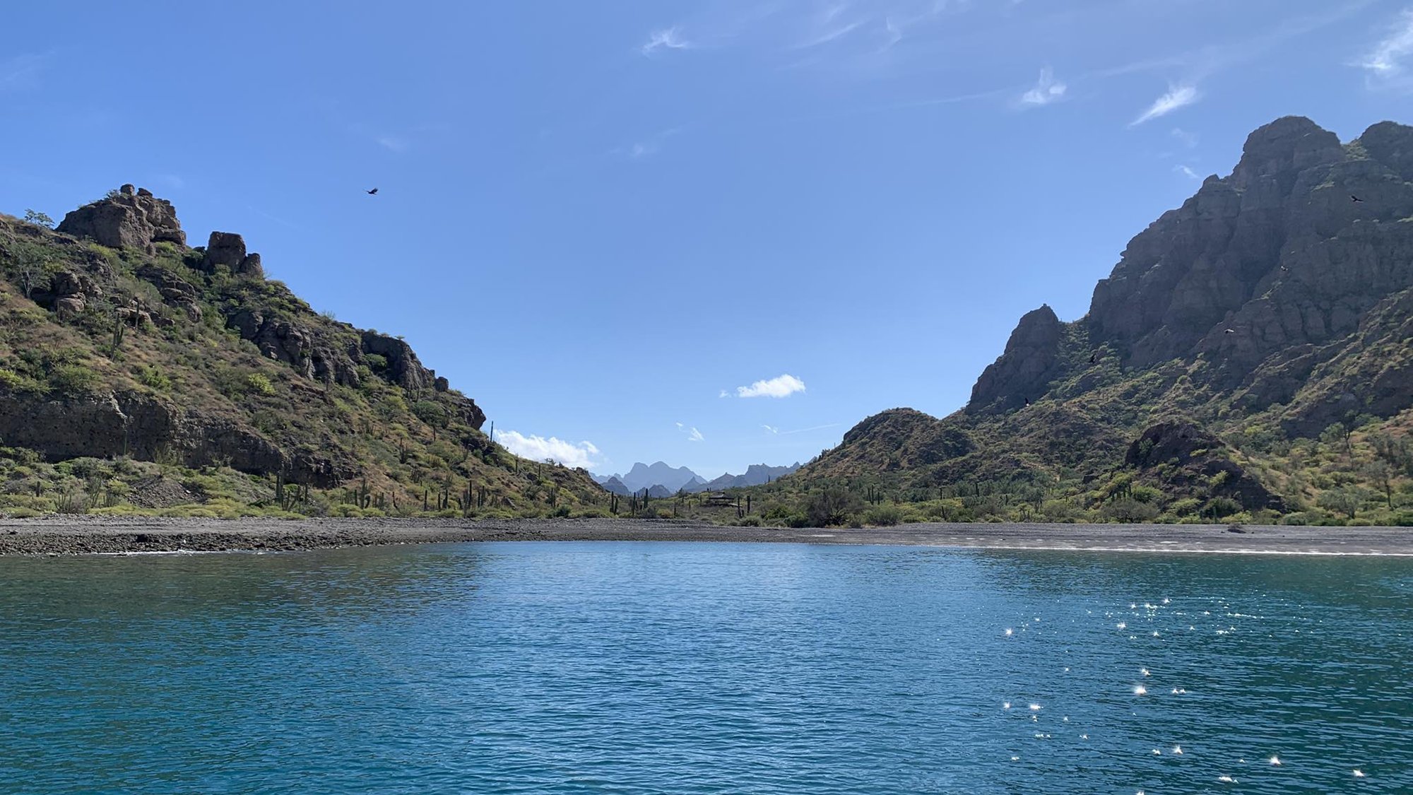 Wind on our nose and no fish biting our lines was the theme for the trip to Candeleros Chico. On the way I pulled up the weather and was disappointed to see wind gust up to 25 knots overnight from the west. Figuring the anchorage would be a no go, we still pulled in to take a look and quickly affirmed our decision that this would not be a safe harbor for the night. Jack is hopeful we can bring his wife her since it is a gorgeous tiny bay with high surrounding peaks and a small window out to the ocean.