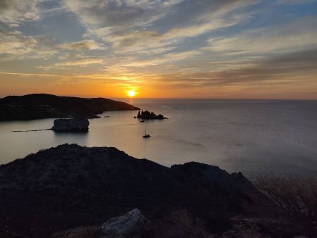 My San Juanico tradition was continued with an early paddle into shore before climbing the hill overlooking the bay. I was pushing it a bit because it was a longer walk than normal but I ended up with five minutes to spare. A pretty sunrise with some clouds over the Sea was my payoff. I enjoyed the meditative view awhile before climbing down and scrambling up the larger hill more to the west. This one is quite steep and each year I question my sanity taking on the risk of scaling it. Alas, I survived once again.