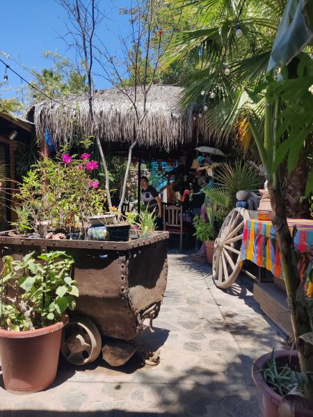 The plan is always to eat lunch at Las Equipales so we kept it to a few drinks and some chips/salsa. We soaked in the lush patio with the sound of the water features and little birds chirping. Next up was a stop at the dive shop for some shopping. Chatting with the owners it seems tourism is still down since Covid but enough to keep things sustained. Purchases acquired the last shopping spot was a thrift store. They had all kinds of treasure from the 80’s. I was tempted by a few toys I had as a kid. But given the lack of space, and the realization I’d probably rarely pick them up, I passed.