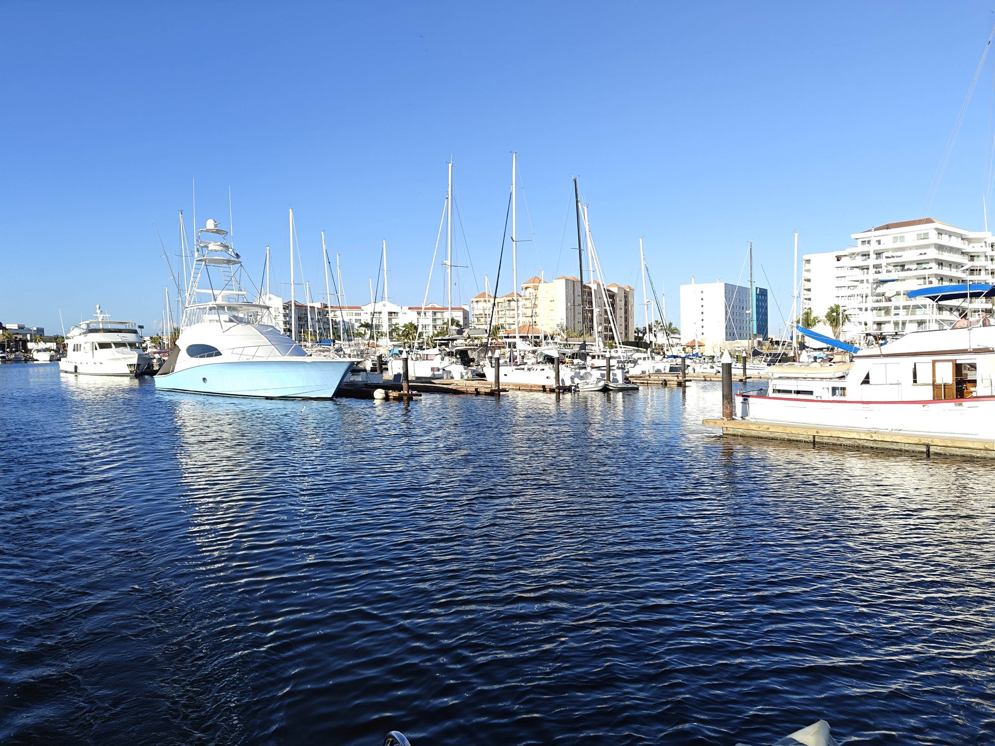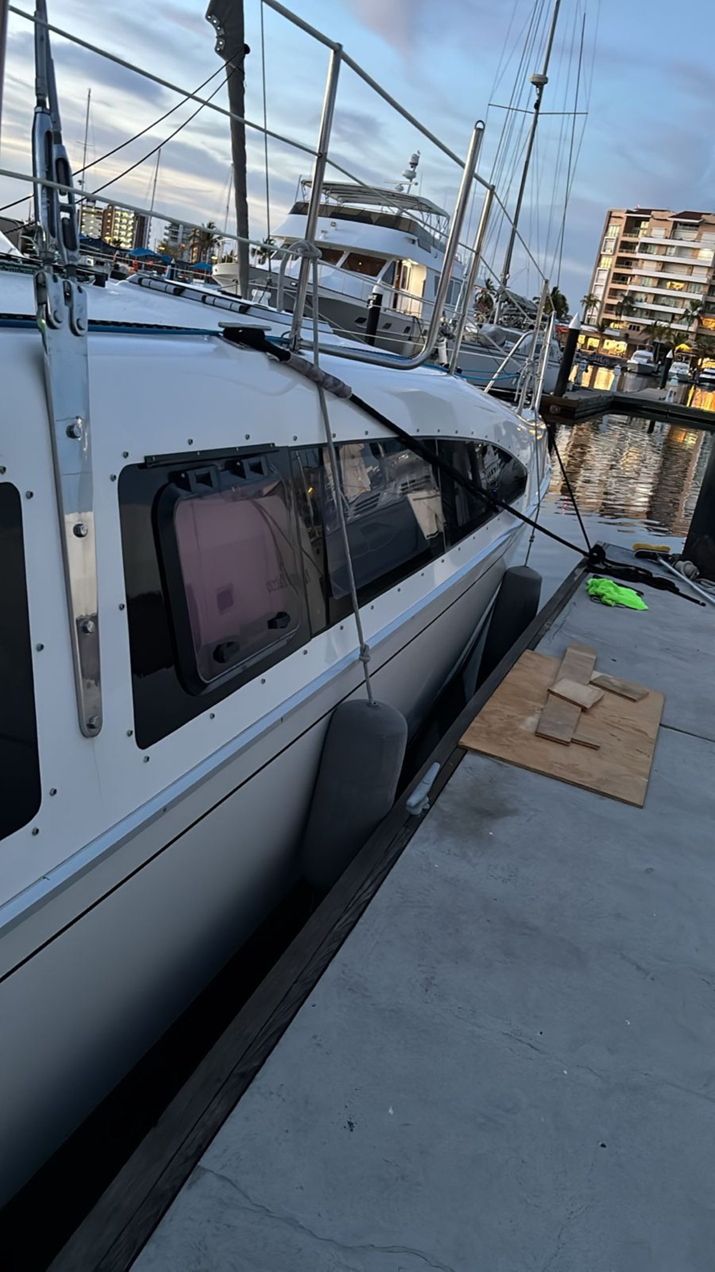 I seem to inadvertely steer myself into situations were things are rush, rush, rush. In this case, a weather window to cross to the Baja was here and if it was missed I was looking at another week before the next mellow crossing option. So rush it was, arrival day I dropped off the bow sprit bracket with Rafa to have them painted and then got to getting the boat put back together. All in all it went smoothly and I was checking items off the list left and right – Replace dinghy hoist fiddles (blocks), replace memory foam on the SB side, put away laundry, provisioning, paying Rafa and pickup brackets, getting cash from the bank, getting misc parts from Walmart and the hardware store (the E-scooter again proves it’s value!), chatting with Beto (woodwork guy), installing a wifi enabled water pump drain for the refrigerator, and directing Luis on the final boat cleaning/waxing items, oh and getting the bottom cleaned).