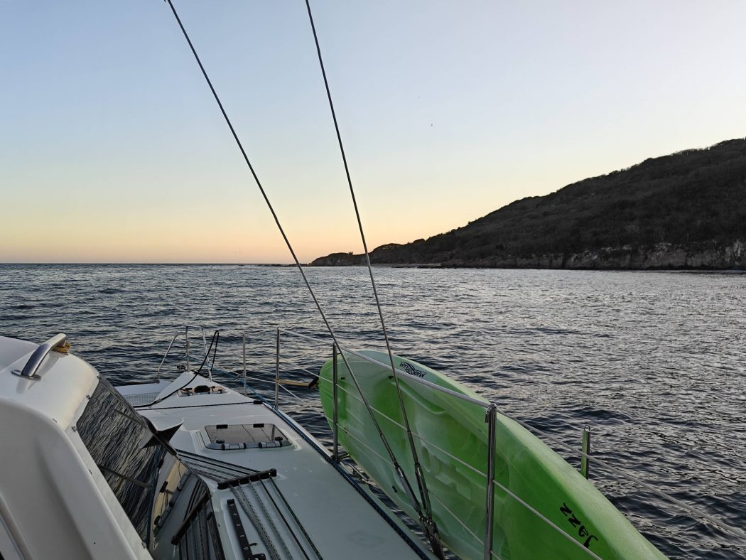 31 hours after landing in Mazatlan, I dropped the lines and headed out of the marina a short distance to stage at Isla Los Pajaros. It was stressful getting off the dock by myself, but it was smooth and soon enough I was dropping the hook, mostly out of the SW swell. I’d had a big lunch, and bailed on cooking dinner. A few snacks and an early night to be for me as at 3:30am departure was on my agenda.