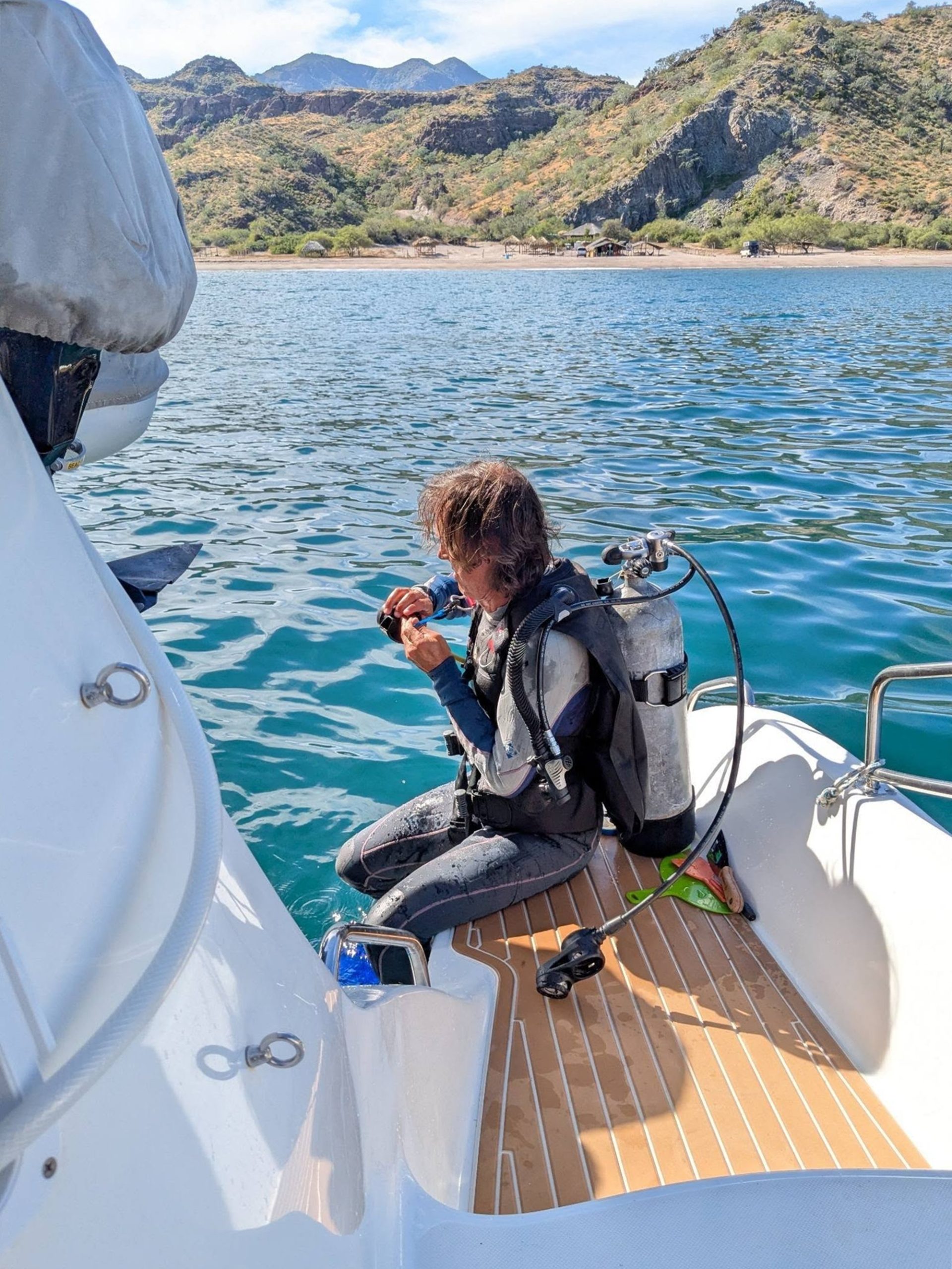 Not wanting to short Jean and Vicki of more time exploring Agua Verde, we headed off to hike the petroglyphs fairly early. That done the bottom was in serious need of a cleaning, so back aboard I rigged up the scuba equipment and dove into the work. Vicki joined too and in less than an hour we had a good looking smooth bottom to help with our 300nm passage.